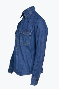 Camisa de Jean Oregon. Hombre. Manga larga. Con Lavado Suavizado. Botones metálicos 2 Bolsillos Plaqué con tapa y botón.